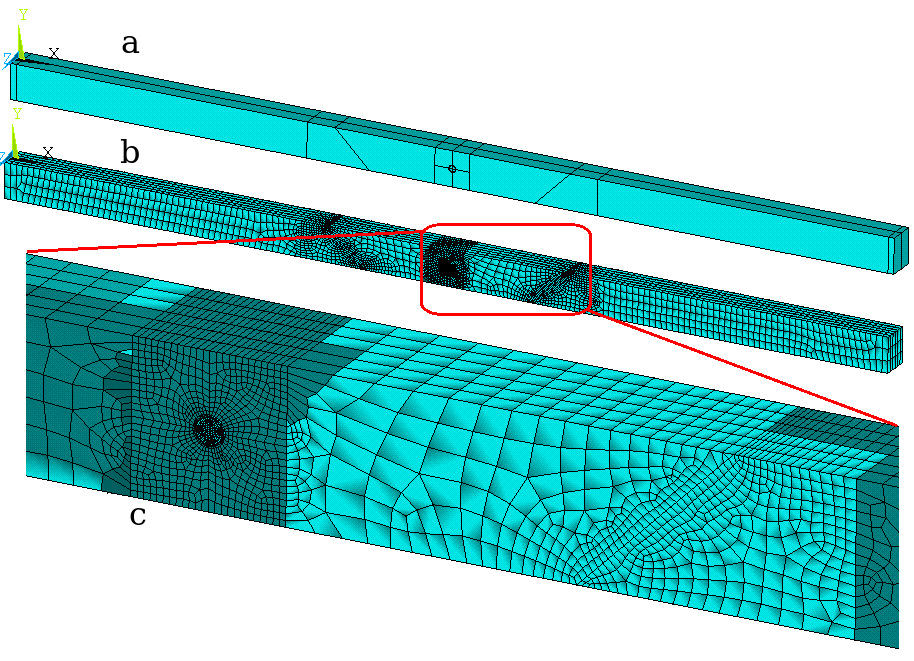 - Numerický konečněprvkový model jednokolíkového spoje vytvořený v softwaru ANSYS