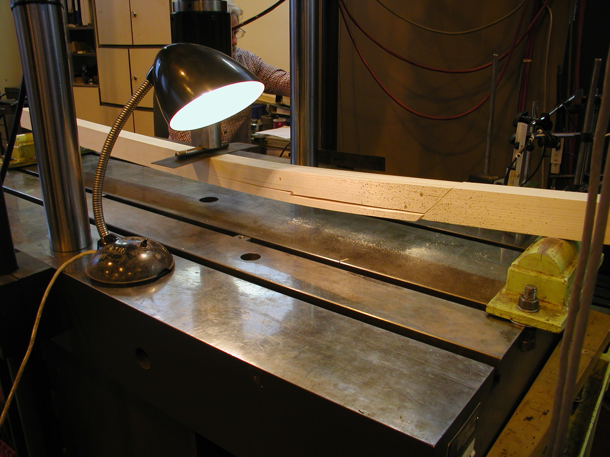 Zkouška v tříbodovém ohybu proběhla dle stejného zatěžovacího diagramu jako ostatní experimenty modelů plátových spojů (graf). Šikmé čelo blíže podpoře bylo jediné smysluplné místo pro analýzu DIC. Vlhkost všech vzorků se pohybovala kolem ideálních 12 % a po zkoušce byly změřeny i materiálové mechanické vlastnosti všech vzorků.